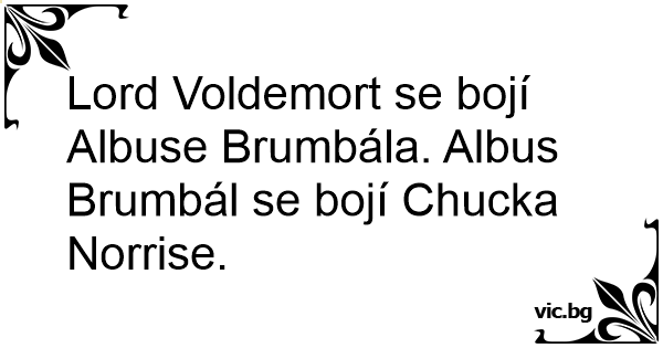 Lord Voldemort se bojí Albuse Brumbála. Albus Brumbál se bojí Chucka Norrise.