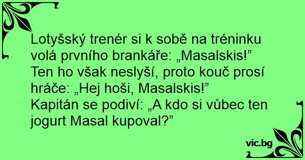 Ten hо však neslyší, proto kouč prosí hráče: „Hej hoši, Masalskis!”