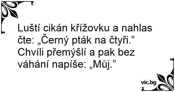 Luští cikán křížovku a nahlas čte: „Černý pták na čtyři.”
