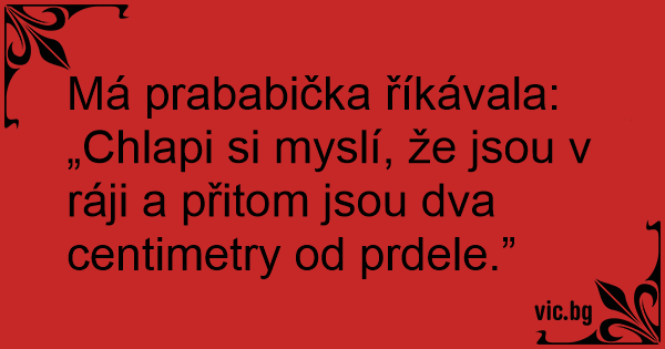 Má prababička říkávala: „Chlapi si myslí, že jsou v ráji a přitom jsou dva centimetry od prdele.”