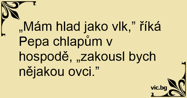 „Mám hlad jako vlk,” říká Pepa chlapům v hospodě, „zakousl bych nějakou ovci.”