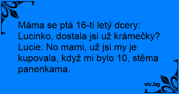 Máma se ptá 16-ti letý dcery: Lucinko, dostala jsi už krámečky?