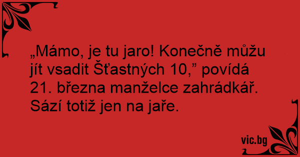„Mámo, je tu jaro! Konečně můžu jít vsadit Šťastných 10,” povídá 21. března manželce zahrádkář. Sází totiž jen na jaře.