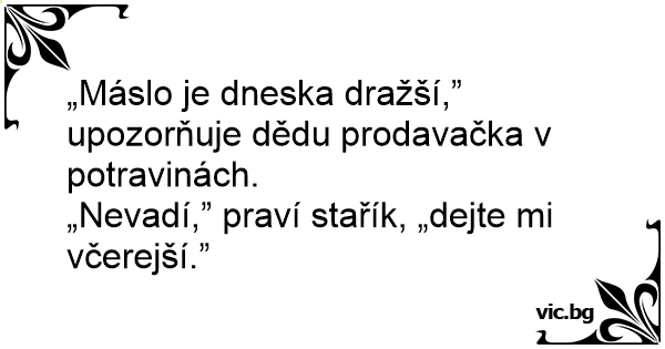„Máslo je dneska dražší,” upozorňuje dědu prodavačka v potravinách.