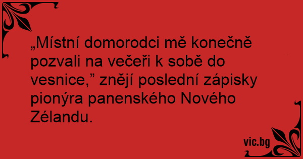 „Místní domorodci mě konečně pozvali na večeři k sobě do vesnice,” znějí poslední zápisky pionýra panenského Nového Zélandu.