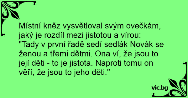 Místní kněz vysvětloval svým ovečkám, jaký je rozdíl mezi jistotou a vírou: