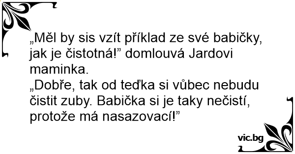 „Dobře, tak od teďka si vůbec nebudu čistit zuby. Babička si je taky nečistí, protože má nasazovací!”