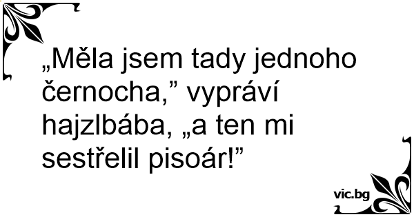 „Měla jsem tady jednoho černocha,” vypráví hajzlbába, „a ten mi sestřelil pisoár!”