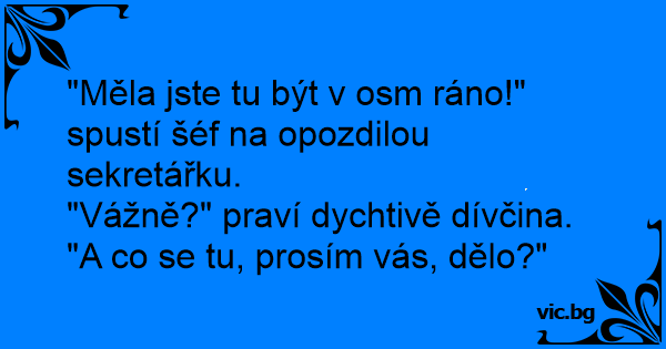 "Měla jste tu být v osm ráno!" spustí šéf na opozdilou sekretářku.