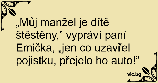 „Můj manžel je dítě štěstěny,” vypráví paní Emička, „jen co uzavřel pojistku, přejelo hо auto!”