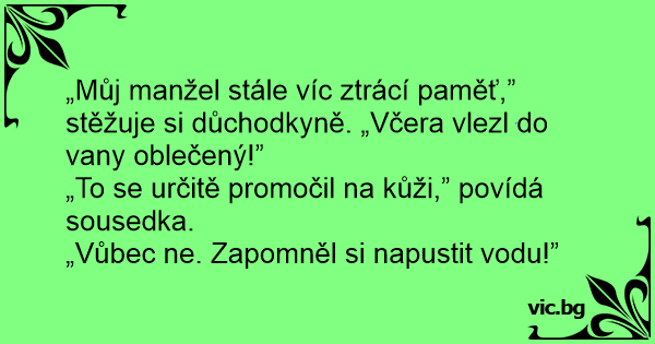 „Můj manžel stále víc ztrácí paměť,” stěžuje si důchodkyně. „Včera vlezl do vany oblečený!”