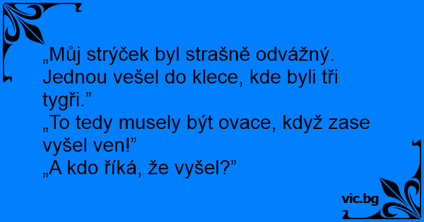„Můj strýček byl strašně odvážný. Jednou vešel do klece, kde byli tři tygři.”