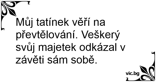 Můj tatínek věří na převtělování. Veškerý svůj majetek odkázal v závěti sám sobě.