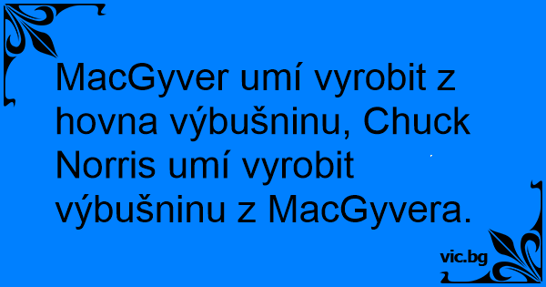 MacGyver umí vyrobit z hovna výbušninu, Chuck Norris umí vyrobit výbušninu z MacGyvera.