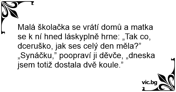 „Synáčku,” poopraví ji děvče, „dneska jsem totiž dostala dvě koule.”