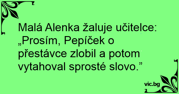 Malá Alenka žaluje učitelce: „Prosím, Pepíček o přestávce zlobil a potom vytahoval sprosté slovo.”