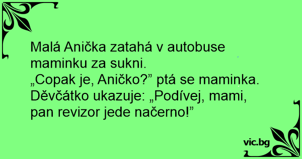 Děvčátko ukazuje: „Podívej, mami, pan revizor jede načerno!”