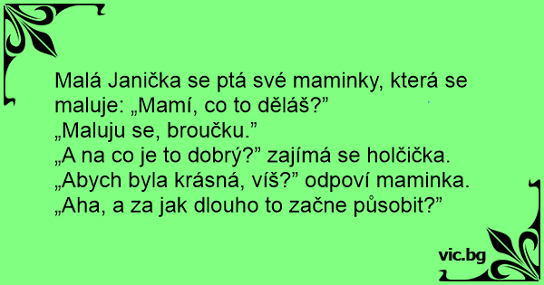 Malá Janička se ptá své maminky, která se maluje: „Mamí, co to děláš?”