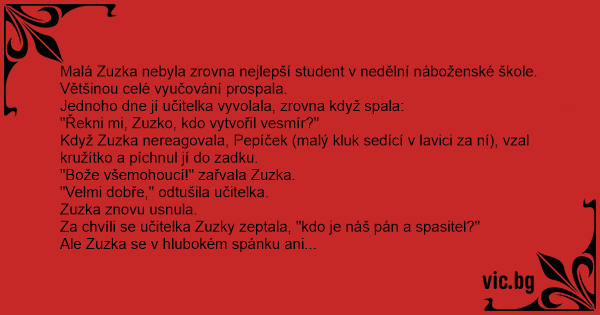 Za chvíli se učitelka Zuzky zeptala, "kdo je náš pán a spasitel?"