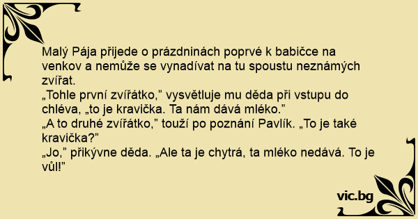 „Jo,” přikývne děda. „Ale ta je chytrá, ta mléko nedává. To je vůl!”