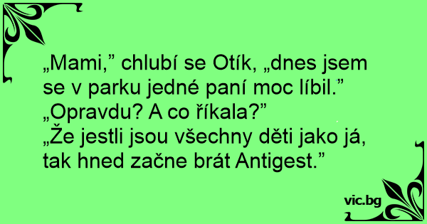 „Mami,” chlubí se Otík, „dnes jsem se v parku jedné paní moc líbil.”