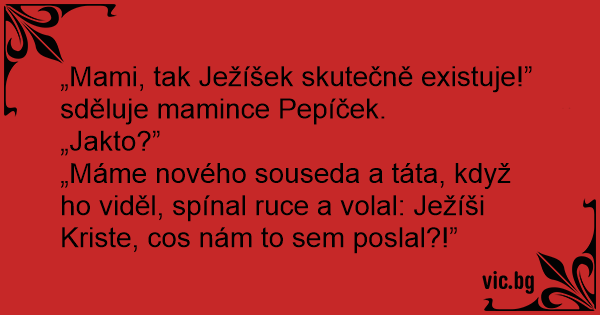 „Mami, tak Ježíšek skutečně existuje!” sděluje mamince Pepíček.