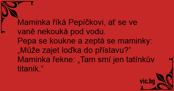 Maminka říká Pepíčkovi, ať se ve vaně nekouká pod vodu.