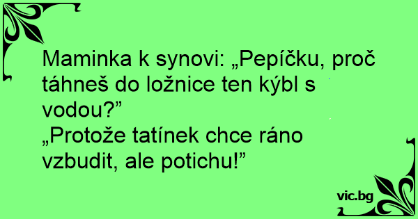 Maminka k synovi: „Pepíčku, proč táhneš do ložnice ten kýbl s vodou?”