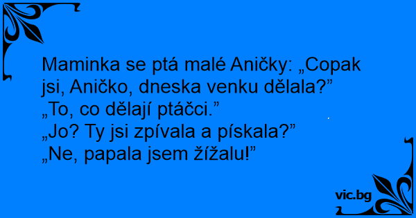 Maminka se ptá malé Aničky: „Copak jsi, Aničko, dneska venku dělala?”