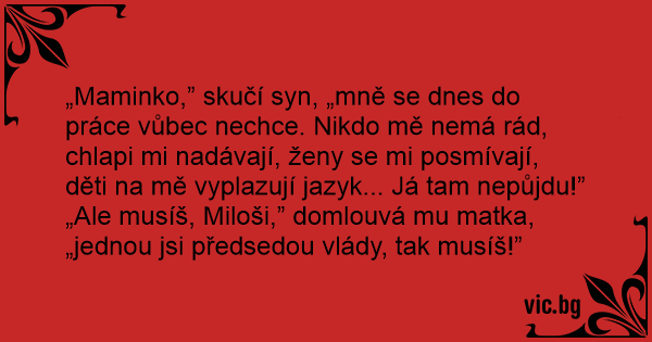 „Ale musíš, Miloši,” domlouvá mu matka, „jednou jsi předsedou vlády, tak musíš!”