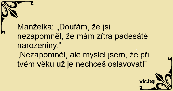 „Nezapomněl, ale myslel jsem, že při tvém věku už je nechceš oslavovat!”