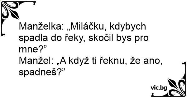 Manželka: „Miláčku, kdybych spadla do řeky, skočil bys pro mne?”