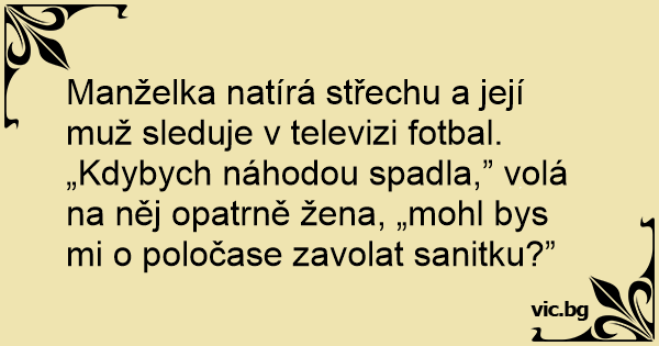 „Kdybych náhodou spadla,” volá na něj opatrně žena, „mohl bys mi o poločase zavolat sanitku?”