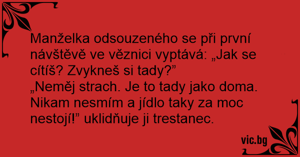 Manželka odsouzeného se při první návštěvě ve věznici vyptává: „Jak se cítíš? Zvykneš si tady?”