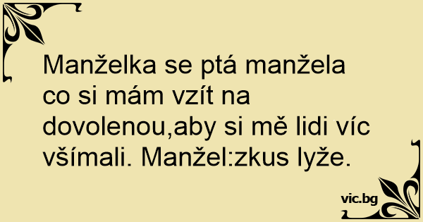 Manželka se ptá manžela co si mám vzít na dovolenou,aby si mě lidi víc všímali. Manžel:zkus lyže.