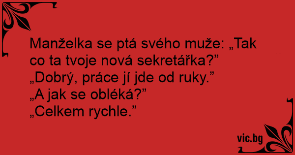 Manželka se ptá svého muže: „Tak co ta tvoje nová sekretářka?”