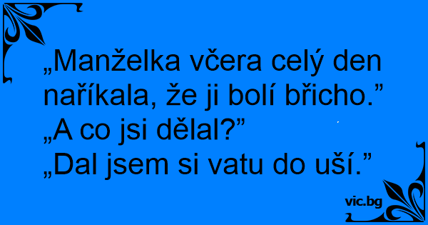 „Manželka včera celý den naříkala, že ji bolí břicho.”