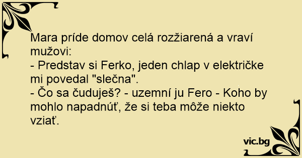 Mara príde domov celá rozžiarená a vraví mužovi: