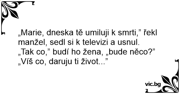 „Marie, dneska tě umiluji k smrti,” řekl manžel, sedl si k televizi a usnul.
