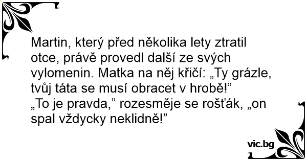 „To je pravda,” rozesměje se rošťák, „on spal vždycky neklidně!”