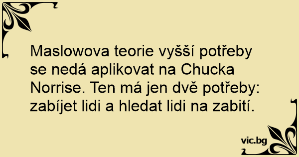Maslowova teorie vyšší potřeby se nedá aplikovat na Chucka Norrise. Ten má jen dvě potřeby: zabíjet lidi a hledat lidi na zabití.