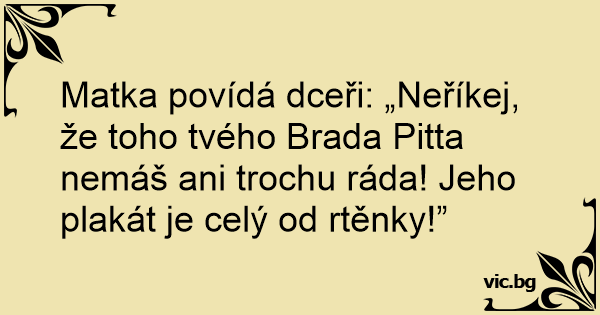 Matka povídá dceři: „Neříkej, že toho tvého Brada Pitta nemáš ani trochu ráda! Jeho plakát je celý od rtěnky!”