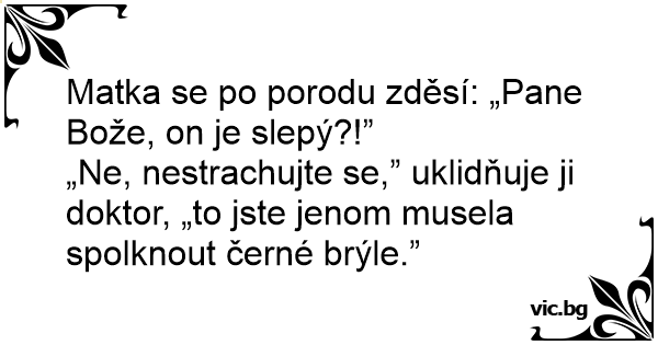 „Ne, nestrachujte se,” uklidňuje ji doktor, „to jste jenom musela spolknout černé brýle.”