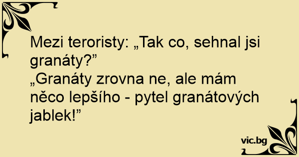 „Granáty zrovna ne, ale mám něco lepšího - pytel granátových jablek!”