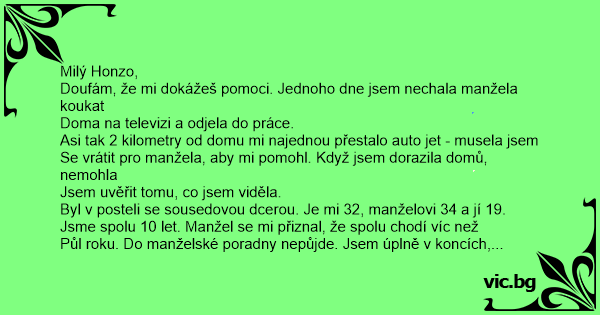 Doufám, že mi dokážeš pomoci. Jednoho dne jsem nechala manžela koukat