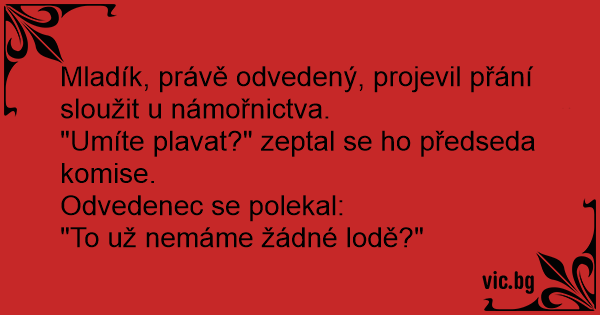 Mladík, právě odvedený, projevil přání sloužit u námořnictva.