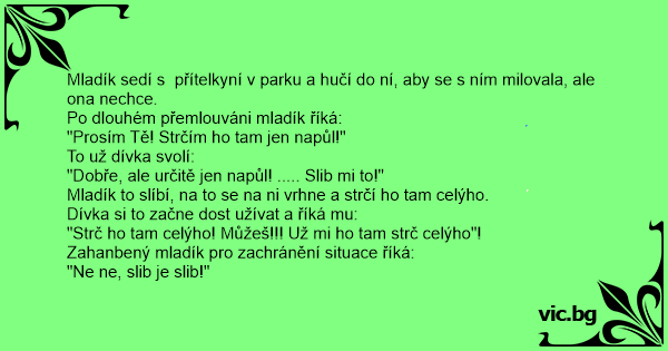 Mladík to slíbí, na to se na ni vrhne a strčí hо tam celýho.