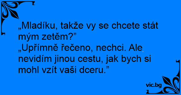 „Mladíku, takže vy se chcete stát mým zetěm?”