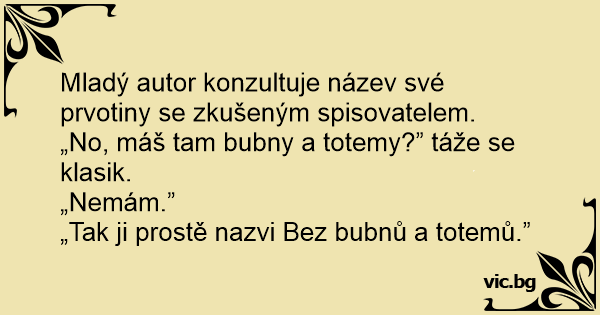 Mladý autor konzultuje název své prvotiny se zkušeným spisovatelem.