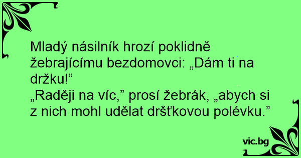 „Raději na víc,” prosí žebrák, „abych si z nich mohl udělat dršťkovou polévku.”